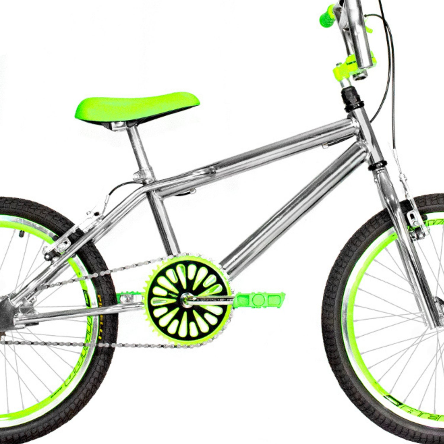 Bicicleta 20 Cromada Cross Aro Aero 20 Verde Neon
