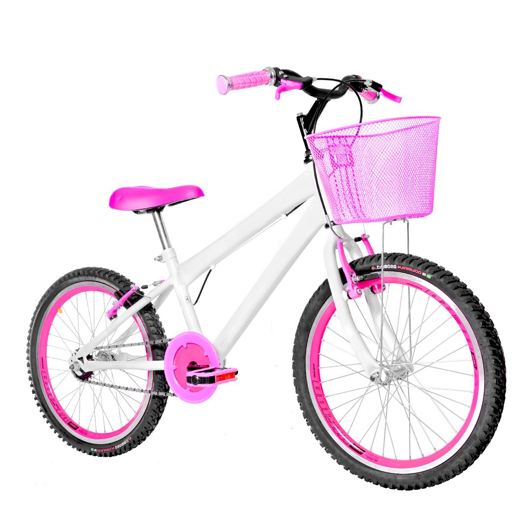 Com um design moderno e uma variedade de cores vibrantes, nossa bicicleta infantil aro 20 conta com quadro certificado pelo Inmetro, um banco (selim) macio e confortável, protetor de coroa e freios V-Brake de alta performance para uma frenagem segura. Para auxiliar nas pedaladas e garantir a praticidade, ela dispõe de rodinhas laterais removíveis, o que é perfeito para a fase de aprendizado, e também da opção de utilizar um descanso lateral resistente. Além disso, vem com uma charmosa cesta de arame colorida, ideal para transportar pequenos tesouros!Feita sob medida para a garota moderna que busca qualidade, conforto e, claro, muito estilo, esta bike é a escolha perfeita para tornar cada pedalada um momento de diversão e exercício.