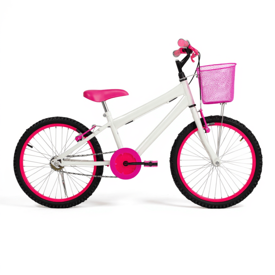 Bicicleta 20 Feminina Branca Infantil Aro Alumínio Pink