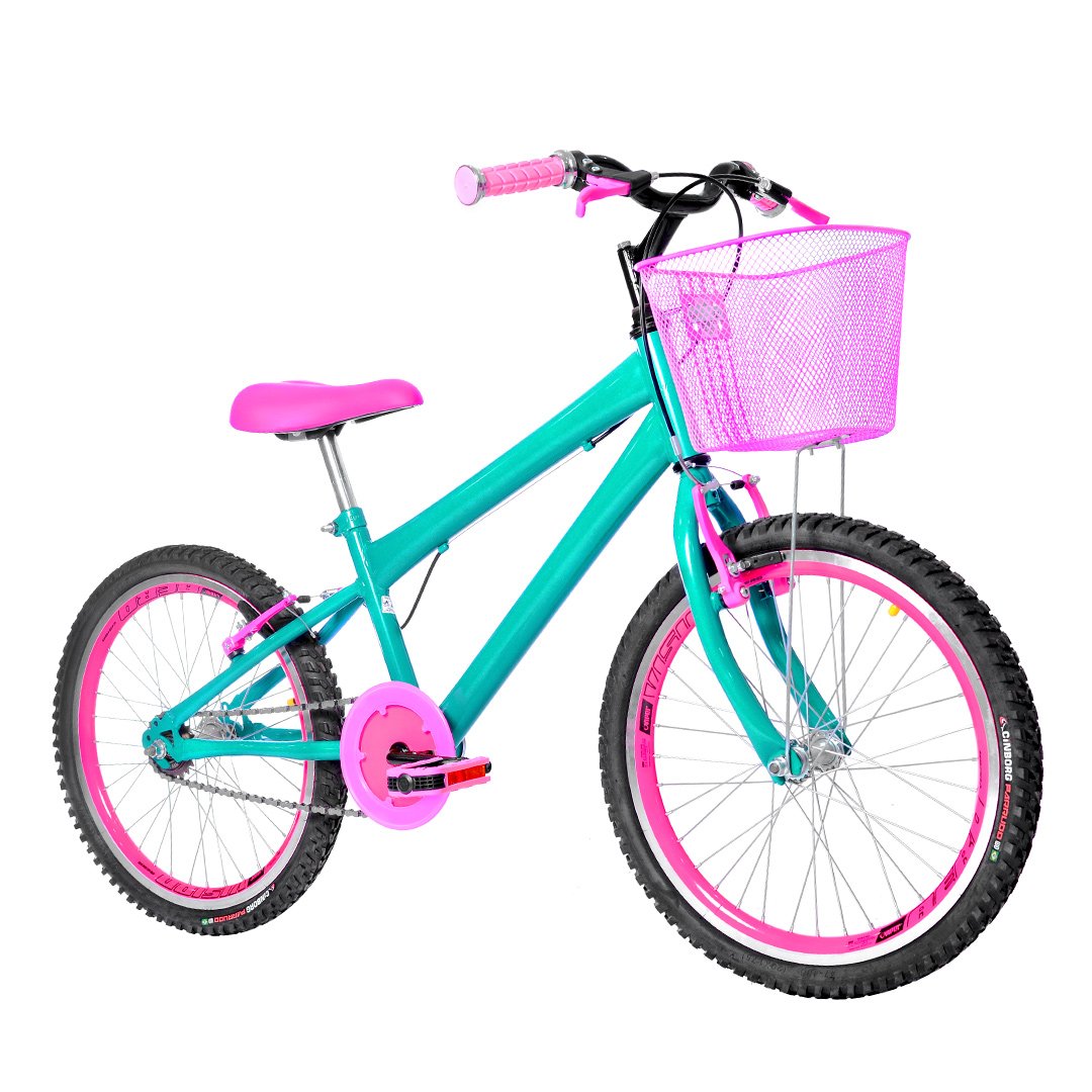 Com um design moderno e uma variedade de cores vibrantes, nossa bicicleta infantil aro 20 conta com quadro certificado pelo Inmetro, um banco (selim) macio e confortável, protetor de coroa e freios V-Brake de alta performance para uma frenagem segura. Para auxiliar nas pedaladas e garantir a praticidade, ela dispõe de rodinhas laterais removíveis, o que é perfeito para a fase de aprendizado, e também da opção de utilizar um descanso lateral resistente. Além disso, vem com uma charmosa cesta de arame colorida, ideal para transportar pequenos tesouros!Feita sob medida para a garota moderna que busca qualidade, conforto e, claro, muito estilo, esta bike é a escolha perfeita para tornar cada pedalada um momento de diversão e exercício.
