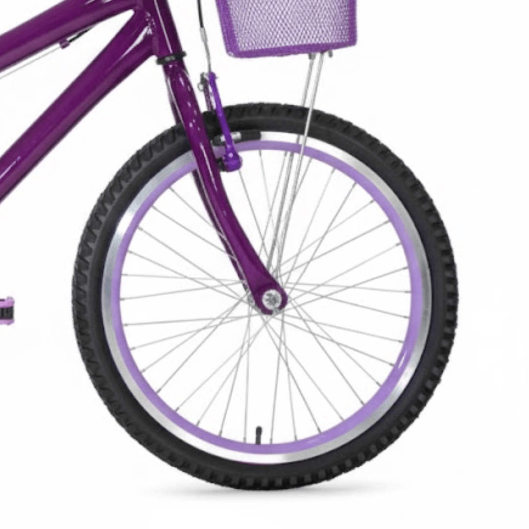 Com um design moderno e uma variedade de cores vibrantes, nossa bicicleta infantil aro 20 conta com quadro certificado pelo Inmetro, um banco (selim) macio e confortável, protetor de coroa e freios V-Brake de alta performance para uma frenagem segura. Para auxiliar nas pedaladas e garantir a praticidade, ela dispõe de rodinhas laterais removíveis, o que é perfeito para a fase de aprendizado, e também da opção de utilizar um descanso lateral resistente. Além disso, vem com uma charmosa cesta de arame colorida, ideal para transportar pequenos tesouros!Feita sob medida para a garota moderna que busca qualidade, conforto e, claro, muito estilo, esta bike é a escolha perfeita para tornar cada pedalada um momento de diversão e exercício.