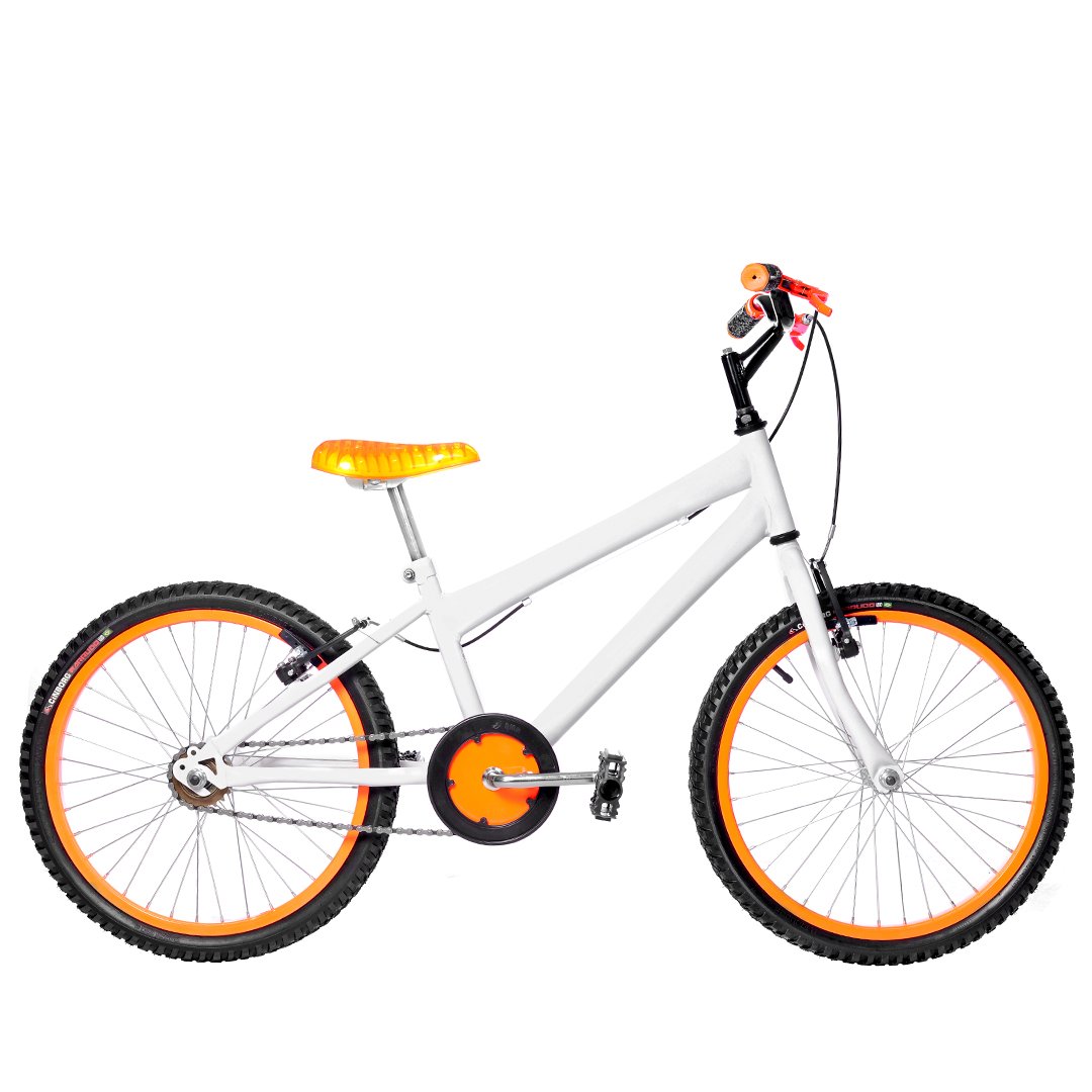 Bicicleta 20 Masculina Branca Infantil Aro Alumínio Laranja
