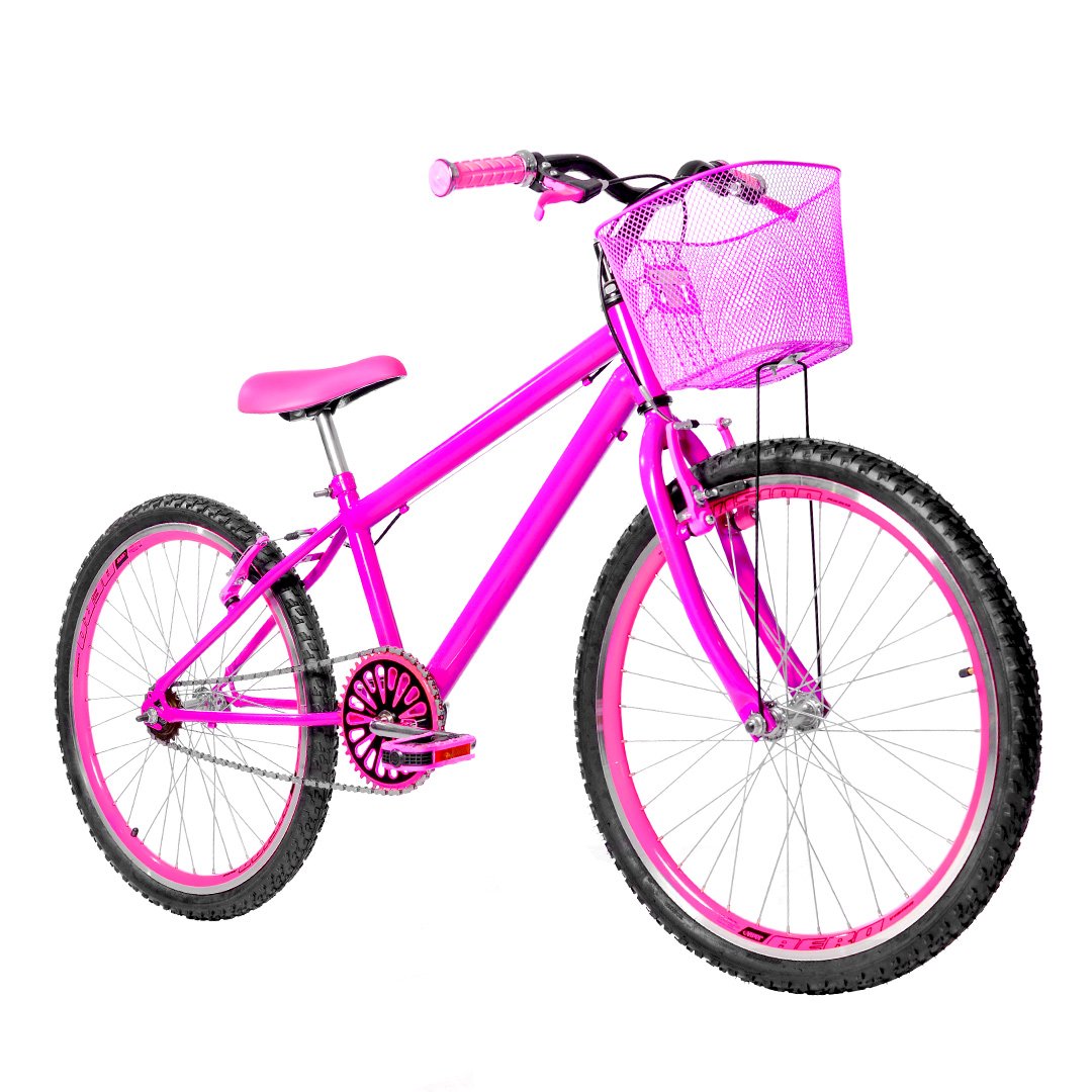 Prepare-se para uma aventura cheia de estilo com a Bicicleta Feminina Aro 24, agora com um diferencial que salta aos olhos: as Rodas com Aro Aero (parede dupla) Colorido! Feita sob medida para a garota moderna que busca qualidade, conforto e, claro, muito estilo, esta bike é a escolha perfeita para tornar cada pedalada um momento de diversão e exercício. Com um design super vibrante e as cores encantadoras que o aro aero realça, sua filha vai se apaixonar à primeira vista e pedalar com total confiança e um visual que realmente impressiona!