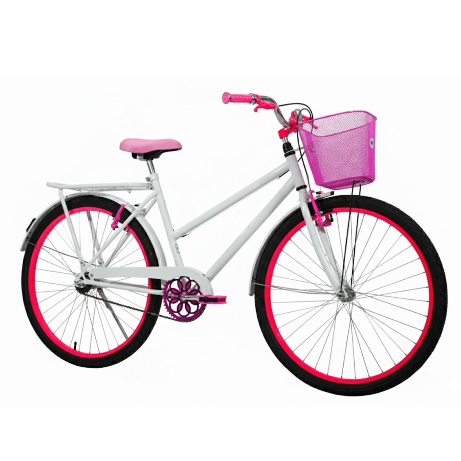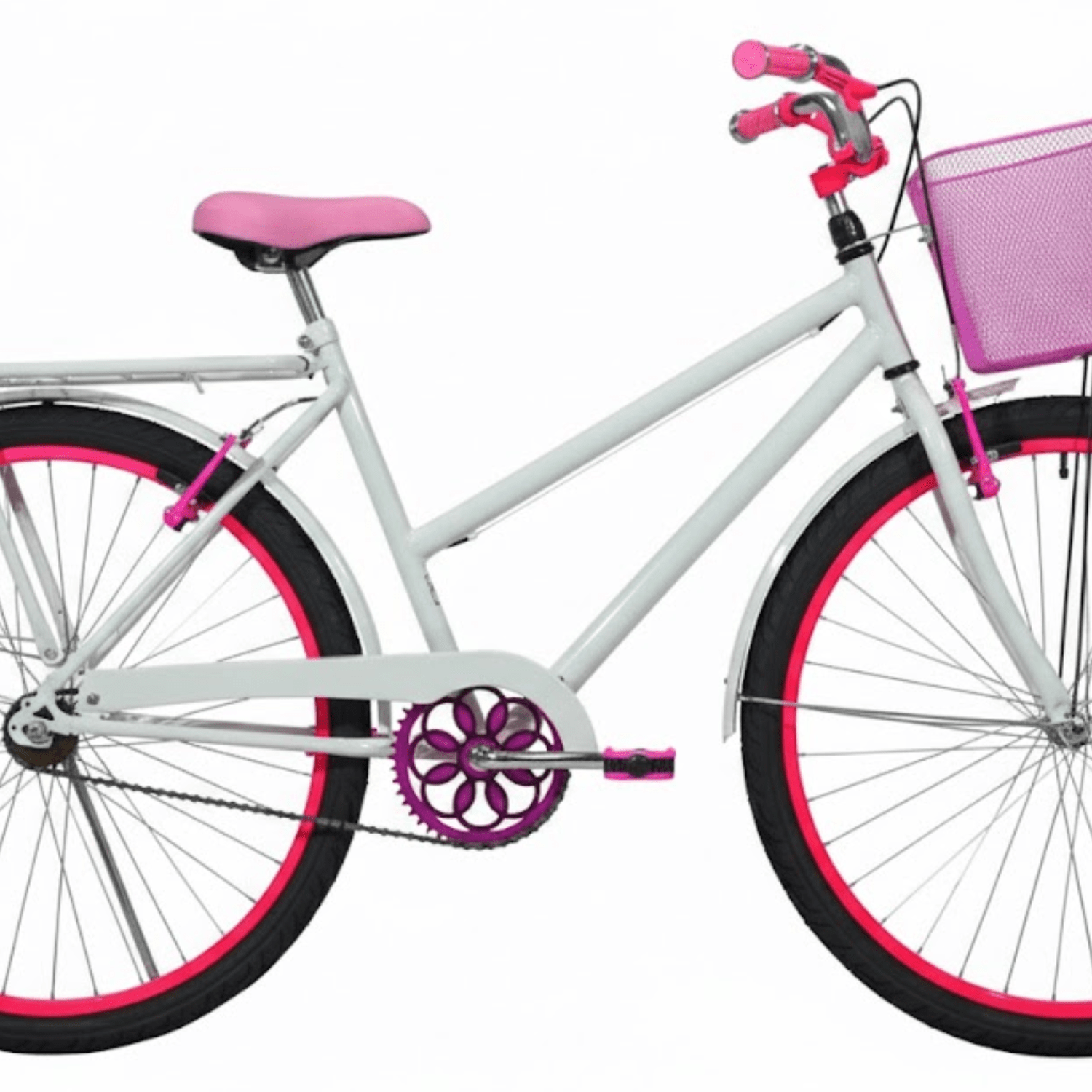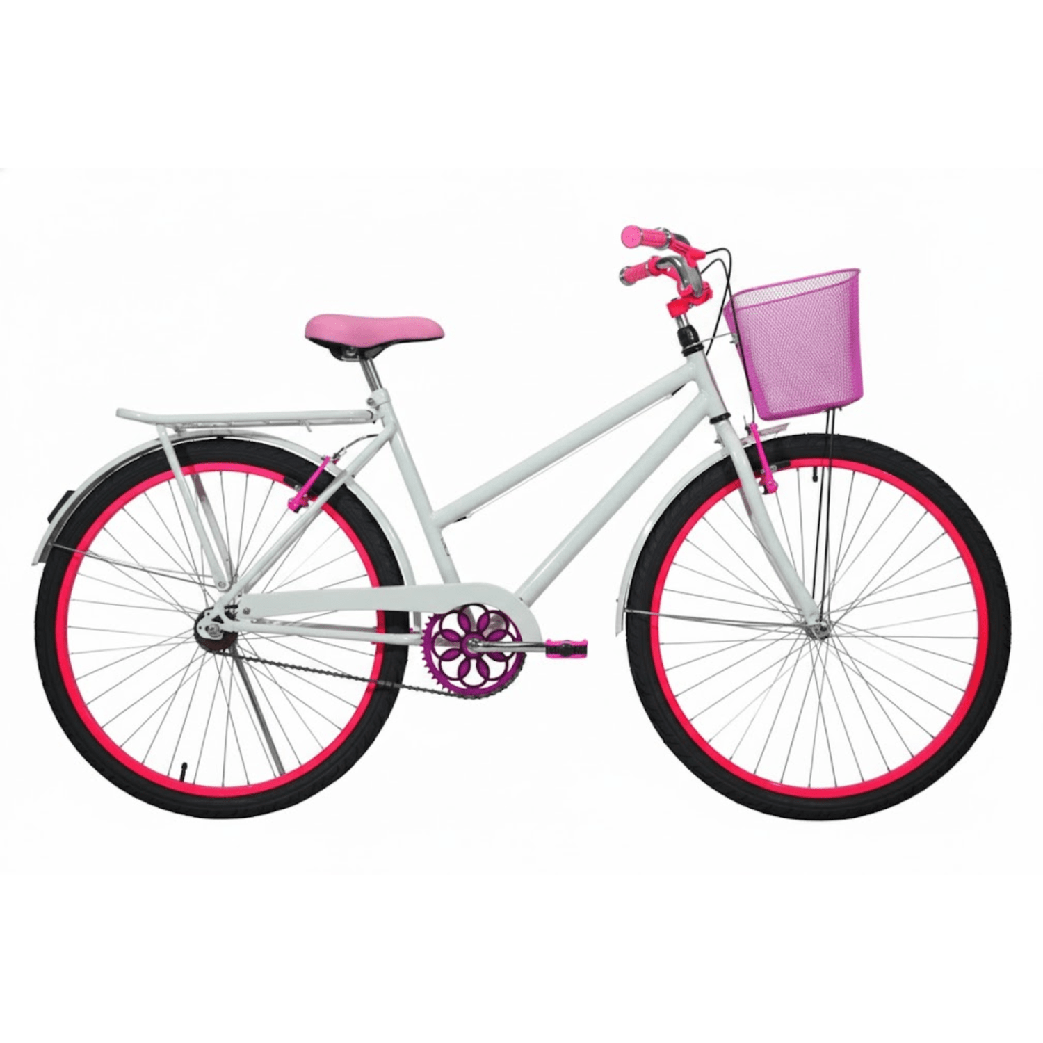 Bicicleta 26 Feminina Branca Poti Aro Alumínio Pink