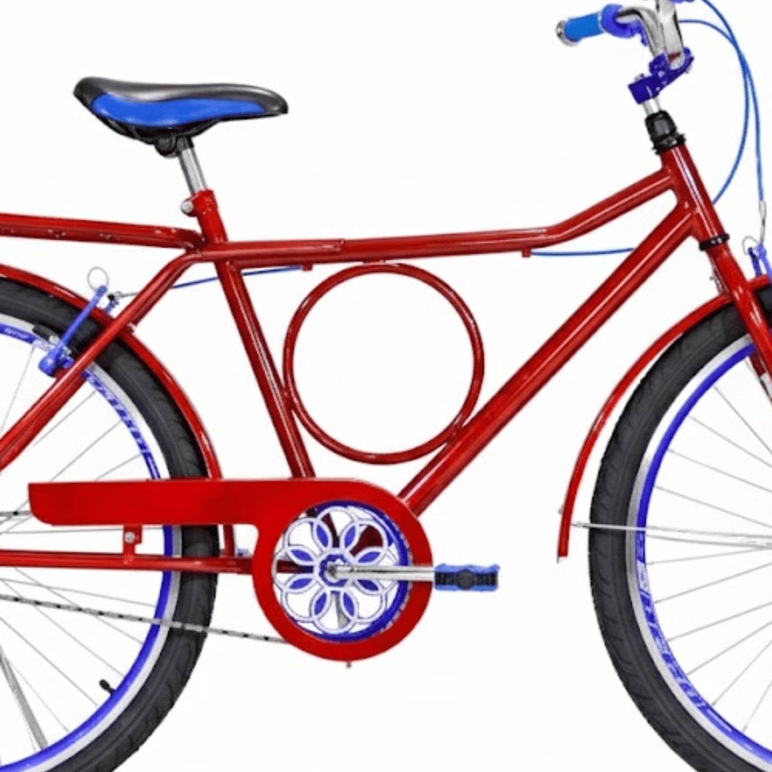 Bicicleta 26 Masculina Vermelha Barra Circular Aro Aero Azul